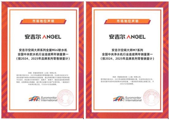 市场数据是最好的印证:奥维云网数据显示,安吉尔空间大师系列2025年中国线下全屋净水市场零售额占比65.95%、零售量占比64.55%,意味着全国每销售10台全屋净水,就有6台来自安吉尔,成为当之无愧的国民级全屋净水产品。欧睿国际咨询数据证实,“安吉尔空间大师系列全屋Mini软水机 全国中央软水机行业连续两年销量第一” “安吉尔空间大师M7系列 全国中央净水机行业连续两年销量第一”。